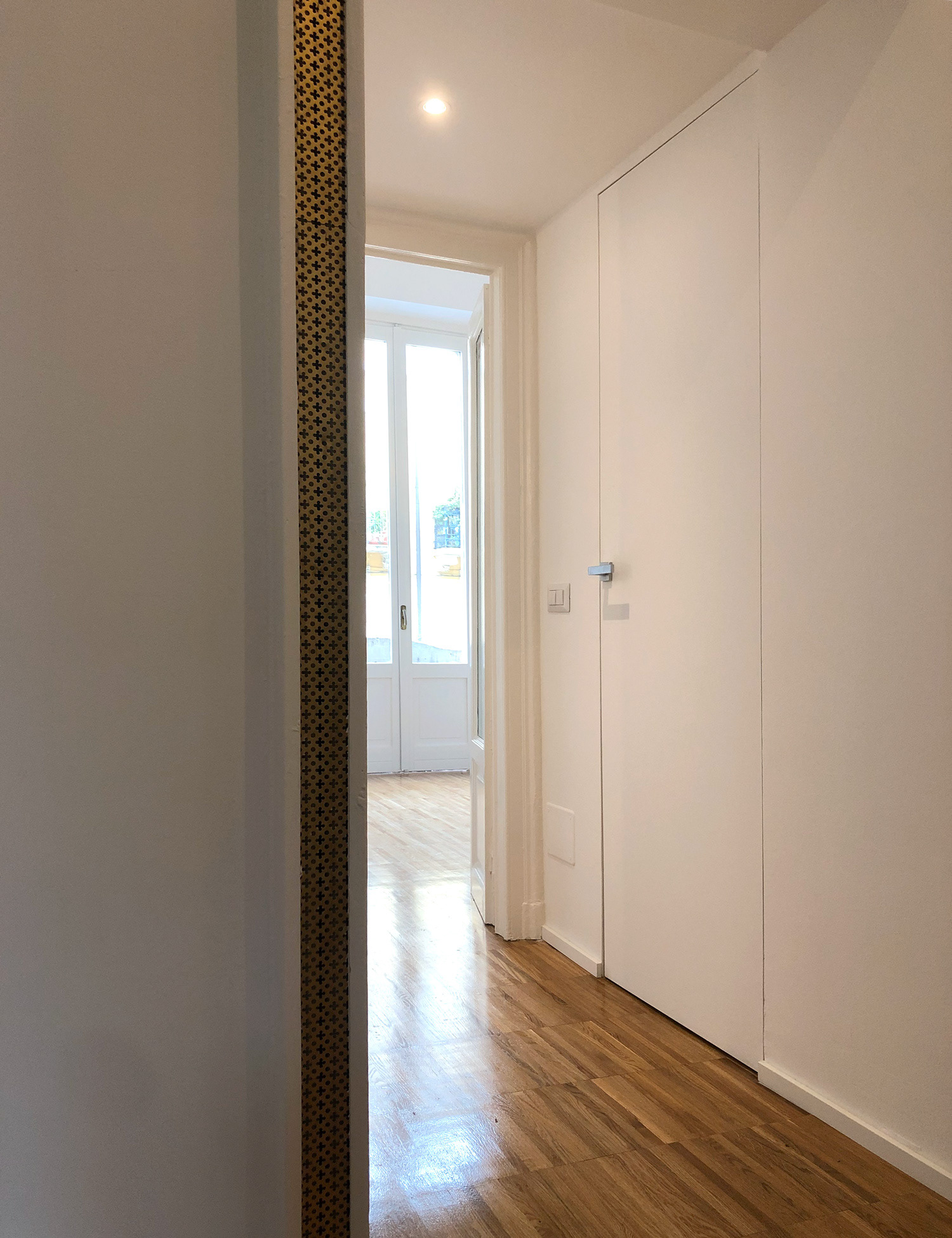 In questo piccolo appartamento milanese nel cuore di Porta Venezia, siamo intervenuti sul layout di distribuzione degli spazi, rendendo la zona living un ambiente più ampio, in continuità con la cucina.