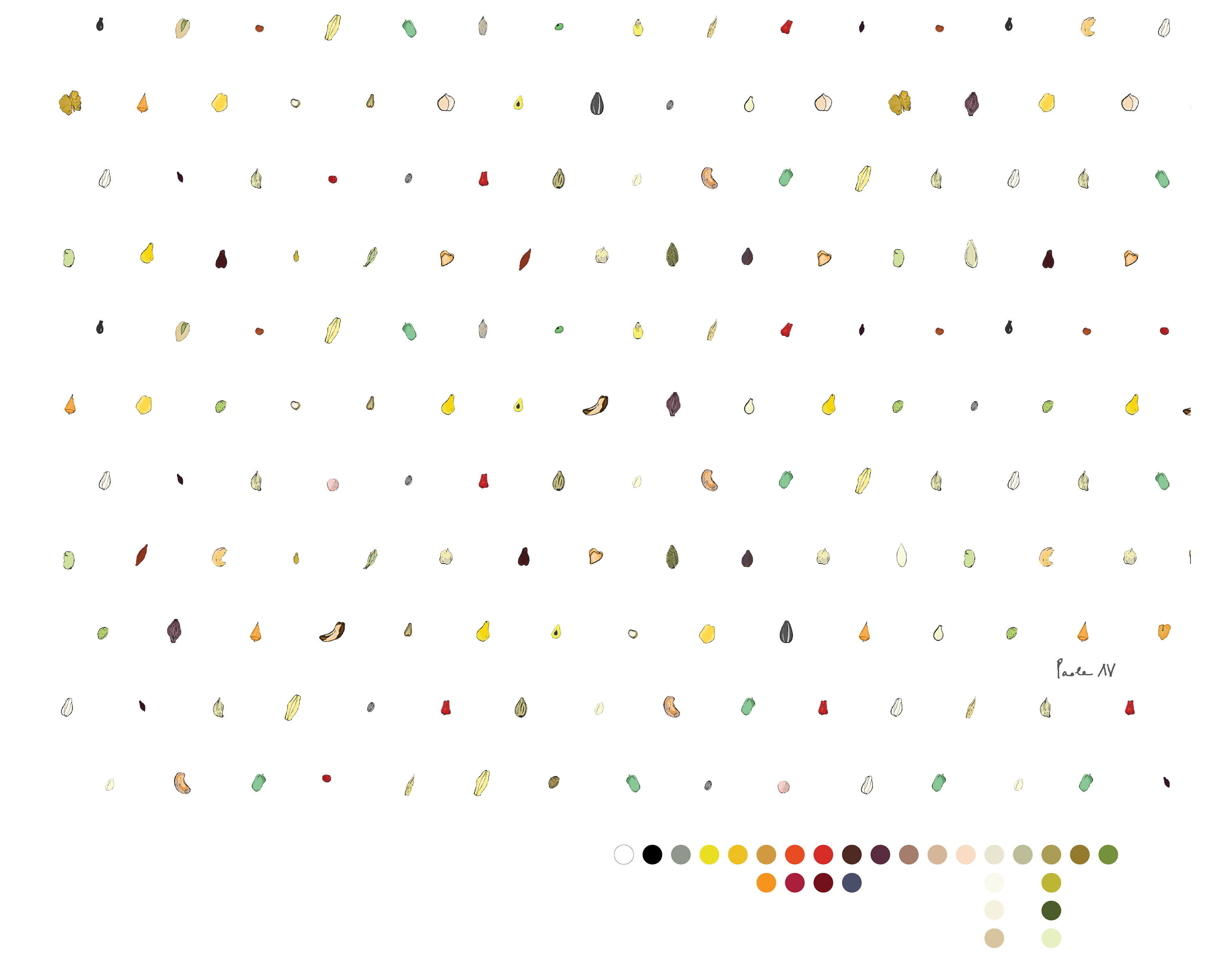 The seed as essence and part of the natural cycle of life: the plant is born from the seed and the seed is born from the plant, in a continuous, infinite cycle.